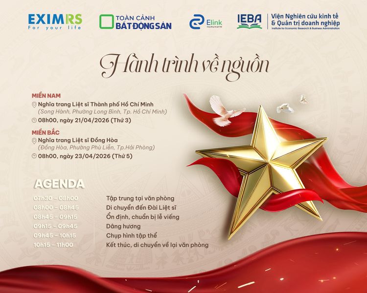 Nhân dịp kỷ niệm 51 năm Ngày Giải phóng miền Nam, thống nhất đất nước (30/04/1975 – 30/04/2026), Công ty Cổ phần Bất động sản EximRS triển khai chương trình “Hành trình về nguồn 2026” dành cho toàn thể Cán bộ nhân viên trên toàn hệ thống.